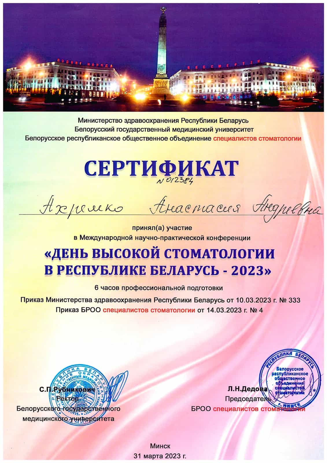 - С 2020 по 2022 гг. – ассистент кафедры стоматологии детского возраста.