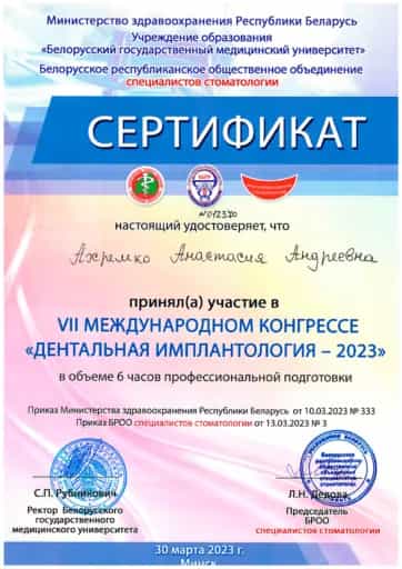 Участие в VII Международном конгрессе "Дентальная имплантация -2023"